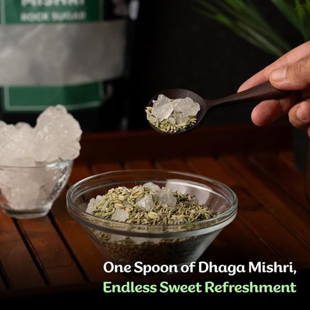 Dhaga Mishri (910 g) delivers classic thread-style rock-sugar crystals—clear, hard sugar strands formed into candy-like threads. This ready-to-use pack is convenient for traditional uses such as paan/tobacco paan, prasad/puja offerings, home remedies and as a mild natural sweetener for beverages or desserts. The product comes in a resealable pouch (pack size 910 g) suitable for households and small catering/ritual needs. Store in a cool, dry place away from moisture to keep crystals intact and free-flowing.