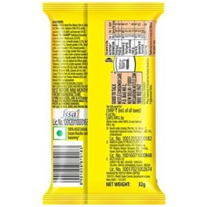 Maggi 2-Minute Masala Instant Noodles (32 g) are a convenient single-serve pouch of the classic Masala flavour. Made with carefully selected spices, this instant noodle cooks in just two minutes and is ideal for a quick snack, breakfast or light meal. The ready-to-eat recipe is popular for its consistent taste and easy preparation — simply boil water, add the noodles and the masala tastemaker, cook for 2 minutes, stir and serve. Sold at an economical price point (₹5 on the retailer page), this 32 g pouch is perfect for stocking in kiosks, canteens or for online single-unit sales.